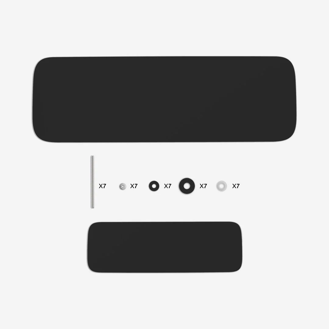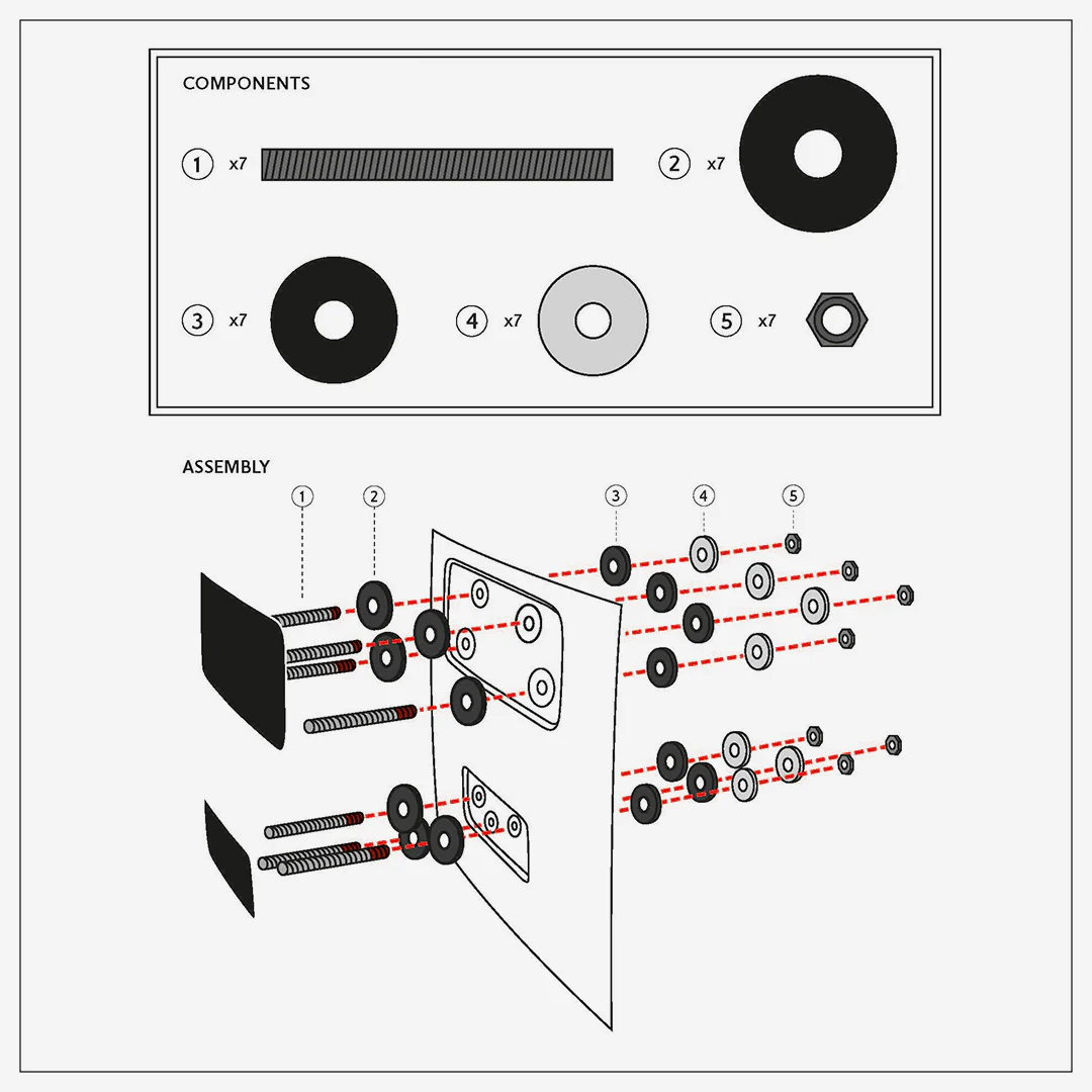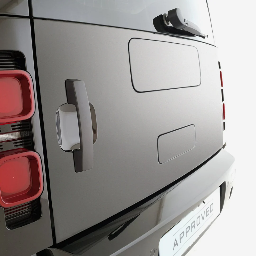 Il kit è composto da due cover che si applicano nei ribassi della carrozzeria dopo aver rimosso il supporto della ruota di scorta. Il fissaggio avviene tramite delle colonnette filettate che vanno fissate dall’interno del portellone posteriore, dopo aver rimosso il pannello portiera.